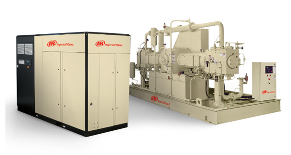 在生產(chǎn)大型瓶子時(shí)經(jīng)常要耗費(fèi)大量的高壓和低壓的壓縮空氣。對(duì)于選用組合式空氣系統(tǒng)的某些用戶,英格索蘭可以提供主壓縮機(jī)配備增壓器的系統(tǒng)解決方案。這種組合的優(yōu)勢(shì)在于他允許每個(gè)流程可以獨(dú)立增加流量。主壓縮機(jī)可以選擇無(wú)油螺桿壓縮機(jī)或離心式壓縮機(jī),無(wú)需要經(jīng)常維護(hù)保養(yǎng)。堅(jiān)固的兩級(jí)無(wú)油潤(rùn)滑活塞機(jī)可以作為增壓器使用。